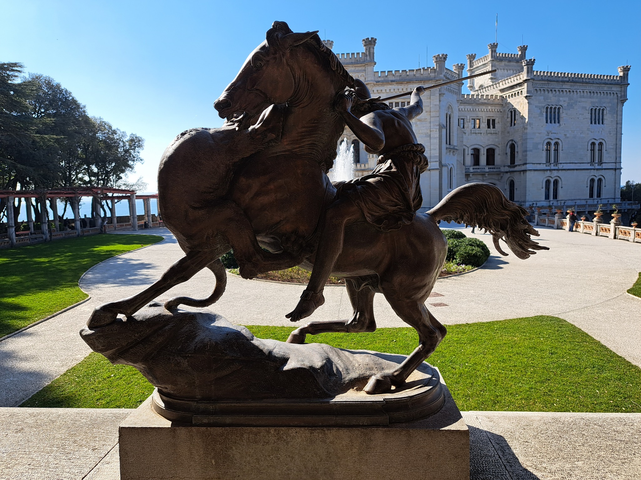 Vožnja modernim turističkim autobusom u smjeru Italije, do Trsta. Odlazimo do romantičnog dvorca Miramare, smještenog na samom rubu mora, okruženog prekrasnim botaničkim parkom. Dvorac je dao izgraditi habsburgški nadvojvoda Ferdinand Maksimilijan. Najvećim dijelom dovršen je 1860. godine, kada je Maksimilijan ondje uselio sa svojom suprugom Charlottom od Belgije. Nakon tragične sudbine graditelja Miramarea, dvorski kompleks dugo se koristio za povremene boravke Habsburgovaca, prije svega popularne carice Sisi.