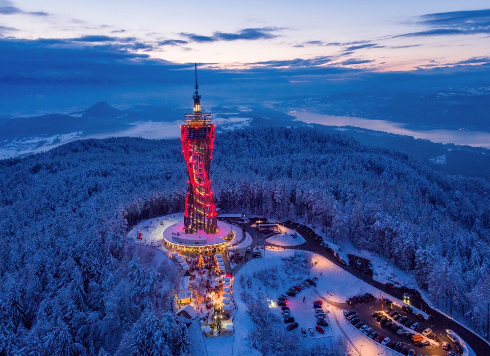 Zatim ćemo posjetiti Pyramidenkogel. Drveni toranj na Pyramidenkogelu visok je 100 metara, pa kada se popnete na njega, imat ćete jedinstven pogled na zelenu Korušku, a za lijepog vremena jasno ćete vidjeti ljepote i velike vrhove Slovenije… U spektakularnom pogledu na jezera i planine koje okružuju toranj možete uživati s tri promatračke platforme, kao i iz Sky Boxa, staklenog restorana s pogledom od 360 stupnjeva.